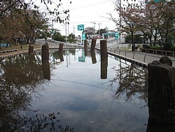 左:橋脚遺跡の発掘調査 図面 画像をクリック→拡大表示