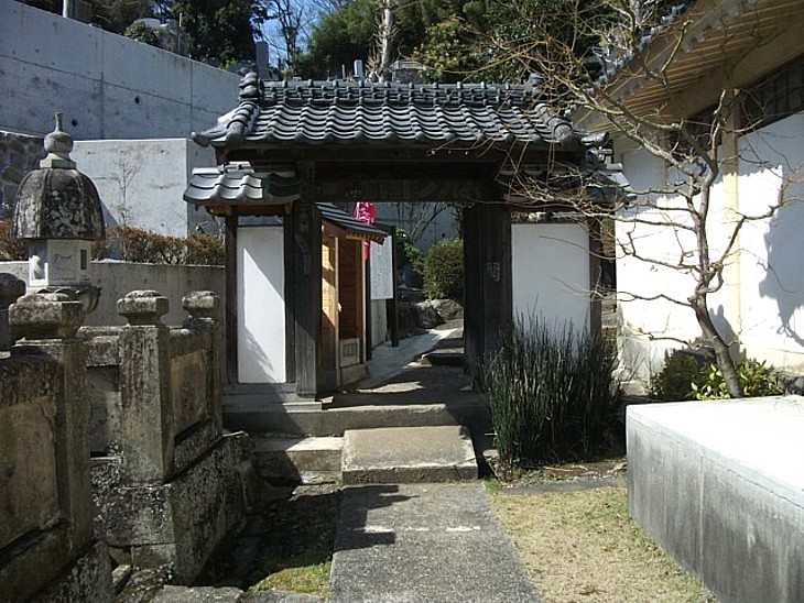 本堂左の門から墓所へ。俳人・萩原麦草の句碑 最明寺 時頼よりの 時雨ふる が建つ。
