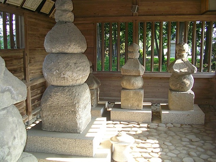 覆屋に並んでいる墓石群は重忠と一族の墓、一説には重忠と家臣団の墓とも言われる。