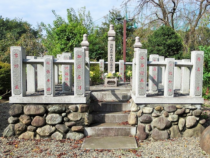 常楽寺の供養塔 左から、義経正室(京姫)・河越重頼・源九郎義経。
