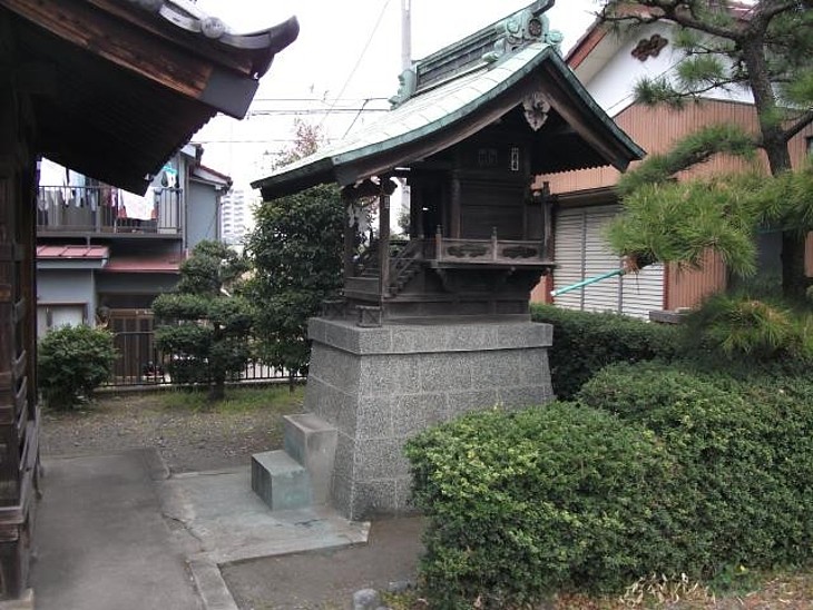 手前が拝殿で裏側が本殿だろう。この中に古い石祠が納められている、のかも知れない。