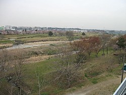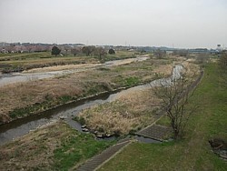 右:清水義高が討たれた入間川の鳥瞰 画像をクリック→拡大表示
