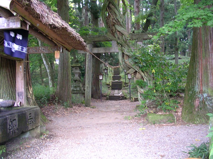 蔦の絡んだ大木が視界を遮る。関が廃された以後は「旗宿の鎮守」として崇敬された小社である。