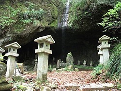 JR東海道線の湯河原駅から温泉街の中心に近い観光会館まで約3km、観光会館から奥湯河原のパークウェイ方向と県道75号(椿ライン)の分岐点まで約2km、分岐点から「しとどの窟バス停」(駐車場あり)までジグザグの登り道を7km弱、そこから舗装された白銀林道を200m進んで城山隧道を抜けた先が「しとどの窟」入口で、数台の駐車スペースがある。ここから急な下り坂を400mほど歩いた先が目的地で、下った距離を再び登って戻らなければならないのが辛い。