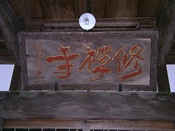 大宋勅賜大東福地肖盧山修禅寺の扁額(複製)。実物は本堂の中に保管されている。