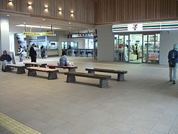 右: 駅の構内にはセブン・イレブンを新設。他に土産物や軽い飲食ができるスペースも設置してある。結構充実した観光ターミナルになった。