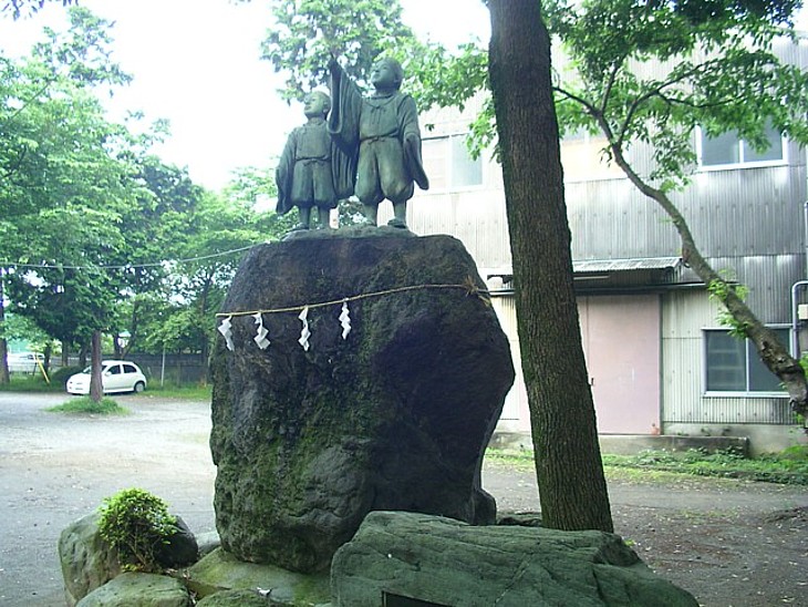 幼い頃の曽我兄弟像。「雁も親子で飛んでいるのに...」と嘆く曽我物語の名シーンだ。