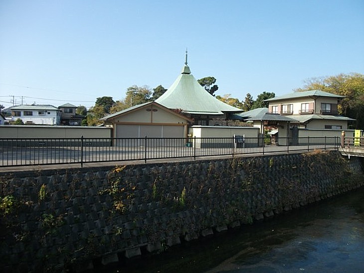 境川越しの宗徳院。なかなか美しい本堂だが、庫裏や車庫など住居部分も立派な造りだ。