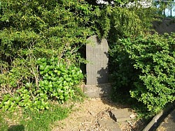 上: 泣き塔が建つ場所は外から見ると樹木の茂みに見えるが実際には大きな岩塊で、JRに改編前の国鉄時代は広い工場敷地だった。