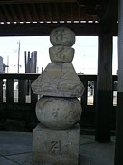 中: 廟所の中央に置かれている五輪塔(約180cm)が忠澄の墓。昔から墓石の粉を煎じて飲むと子供のいない女性は妊娠できる、或いは