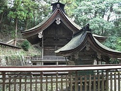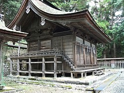 中: 拝殿を通して奥の本殿を撮影。一般の参拝者が入れるのはここまでだが左へ迂回して本殿の建つ平場左側まで登ることができる。