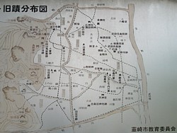 左: 信義館跡に掲示されている「武田乃郷」の旧蹟分布図。かなり詳細な地図なのでこの地域の史蹟の探訪には欠かせない。