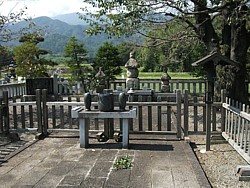 上: 良く整備された信義の廟所だが...甲斐武田氏の人気が高まってから素性の不明確な五輪塔を信義の墓と断定し観光資料に掲載した。