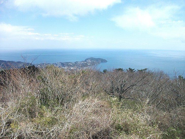 湯河原の街並みは見えないが真鶴半島は一望、晴天なら房総半島まで確認できる。