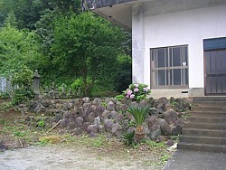 中: もちろん無住で建物もかなり老朽化している。ただし全体に管理は行き届いており、左手には由来の定かでない数基の石塔が残る。