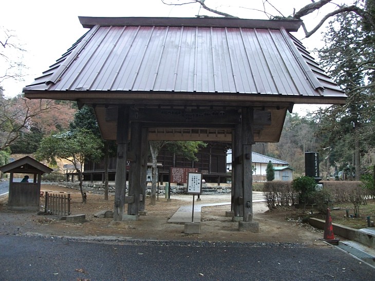 山門を経て本堂の方向を。味わいの深かった茅葺きの屋根は改修されて銅板葺きになった。これも時の流れ。