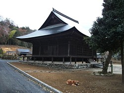 祈った後に罪を許されたため帰国後に勧請した。社殿は室町期の建造で共に萱葺きだが綱神社の屋根は台風による倒木で破損し、半年ほど