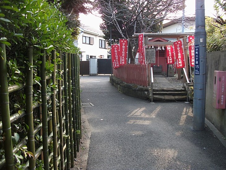 教会の路地奥に宇都宮稲荷神社の祠と幕府跡の碑が置かれている。ここに政庁があった面影はない。