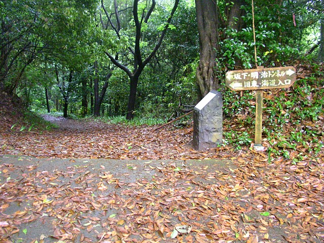 分岐点に立って、登ってきた道を振り返る。ここから右へ下ると明治トンネル、旧東海道は更に手前左へと続く。
