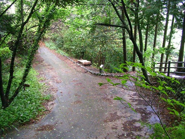 石垣上の細道から来た方向を振り返る。この付近にはかつての東海道が通っていた面影は見られない。