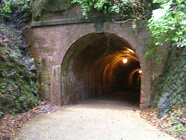 岡部側からトンネルを振り返る。下り道は旧国道と旧東海道へとに分岐し、国道寄りは更に分岐して坂下地蔵堂へ。