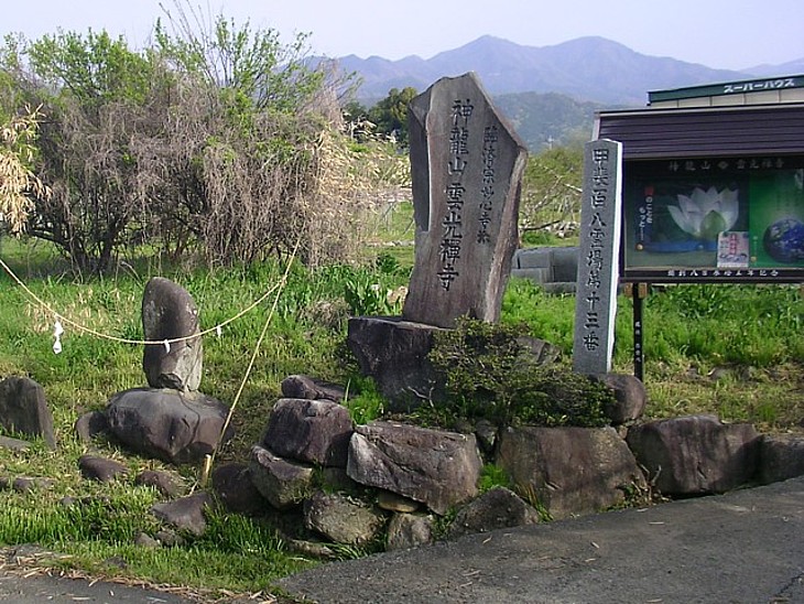 参道入口には甲斐百八霊場第十三番、臨済宗妙心寺派 神龍山雲光禅寺の石碑が建つ。