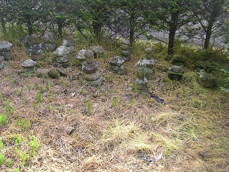 右隅の五輪塔は殉死した家臣の墓標。古文書には信玄が法要を行った記録もある、と。