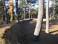 置かれていたと思われる「六の郭」跡が残っており、ここは現在は農家の住居となっている。西側の搦め手虎口(裏側の重要な出入口)の小山部分・西の出丸には