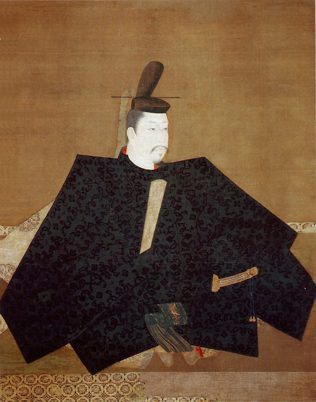 神護寺収蔵の頼朝像。巾112×高さ143cmの絹地に毛抜型の太刀を帯びた束帯姿。