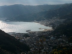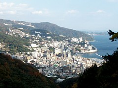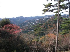 一杯水苑地の周辺は樹木が茂る急傾斜だが、すぐ横の小さな山に登るとやや展望が広がり、眼の下に相模湾と初島が眺められる。谷を挟んで南側には古くから拓けた自然郷の別荘地が広がっている。