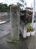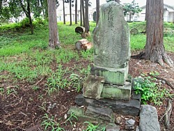墳墓の地図)。鳥居の前を左へ歩き最初の路地を右折、70m先で左に曲がる道沿いの左側アパートの裏手にあるため