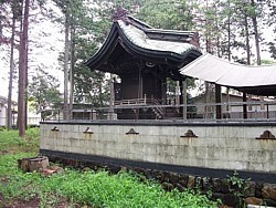 右: 境内はかなり広く管理も行き届いているが、無住。伝承に拠れば義清の没後に館の敷地に社殿を建て義清大明神を祀った、と伝わる。