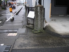 石塔の建立は寛政六年(1794)7月22日、左の側面に「従是東江二丁入」、正面に「義清社」、裏面に「干時寛政第六甲寅歳」、右の側面に