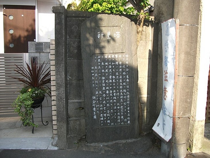 少し北の小路に建つ「塔之辻碑」。鷲に拐われた我が子を探す由比長者・染屋時忠の悲劇を伝えている。