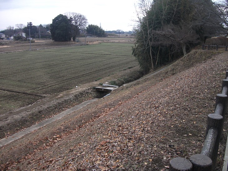 東側は水田が広がる。北西から東へ流れる田川が約5km南で鬼怒川に合流、天然の水濠を構成する。