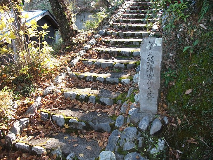 庫裏裏手の小道に菖蒲の墓に至る石標があり、墓所はその上の高みに設けられている。