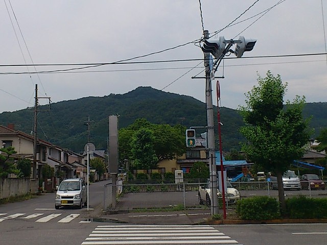 鑁阿寺(標高36m)の北1.5kmから両崖山を。標高251mで麓からの標高差は約215m。