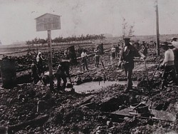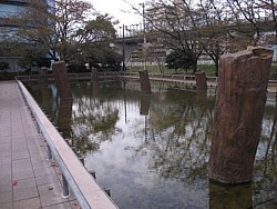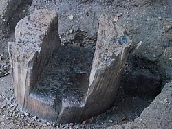 左:橋脚遺跡の発掘調査 図面 画像をクリック→拡大表示