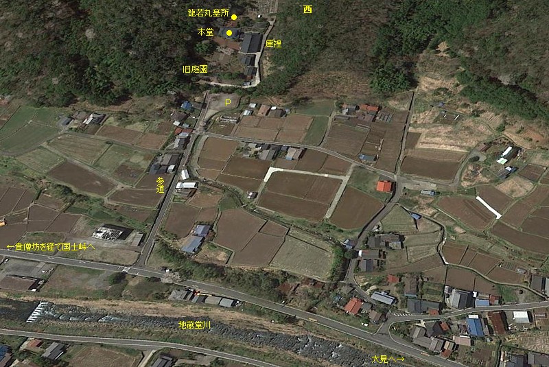 東側の地蔵堂川(大見川上流)から見た最勝院。関東管領上杉憲政の子・龍若丸の墓石がある。