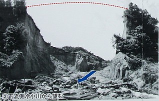 発生し、下流域に大きな被害をもたらした現場。もちろん既に復旧されているが説明看板などで自然の脅威を確認できるし、山道を少し歩けば残された崖を遠望できる。