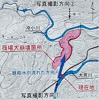崩落場所の地図)。