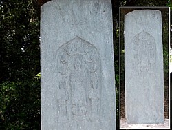 右:斎藤六が維盛の遺児六代の首を埋葬したと伝わる沼津「六代松」の碑 (別窓)