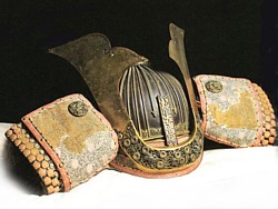 元禄二年(1698)7月25日、奥の細道を辿る旅の途中で多太神社(小松市のサイト)に詣でた松尾芭蕉は義仲が奉納したと伝わる伝・實盛の兜を見て 「むざんやな 甲の下の きりぎりす」 と詠んでいる。