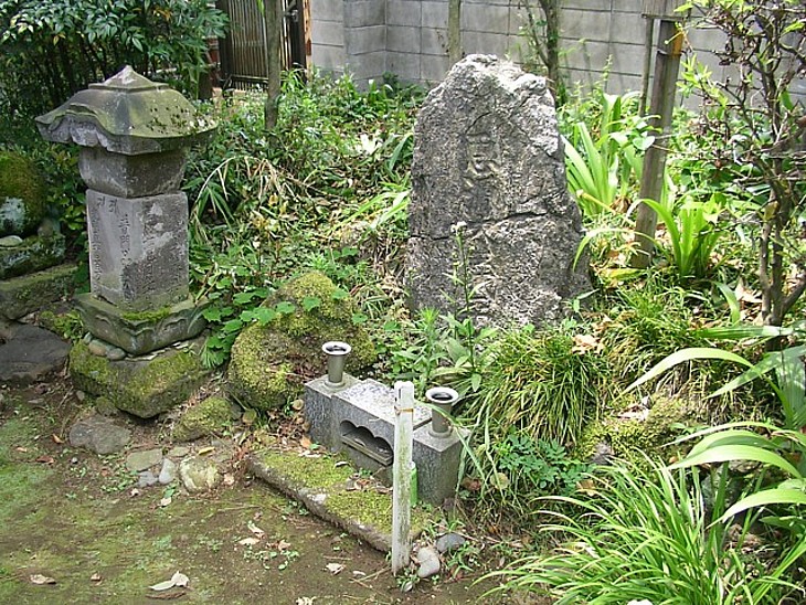 通称の悪源太と刻んだ墓石は後世のもの、本来の墓標は横の小さな自然石だろう。