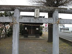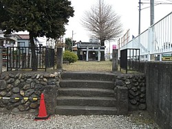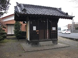 北條政子 は自ら入間河原まで出向いて神田(水田)を寄進し義高供養の社を建てた(ただし、政子が訪れた正式な記録はない)。かつては周囲に垣を巡らした朱塗りの社殿だったらしいが応永九年(1402)8月の大洪水で全てが流され、江戸末期に現在地の200m北(鳥瞰図の黄色★マーク)で見付かった石祠をここに遷座して祀ったと伝わる。神社の祭神は当然ながら清水冠者義高、5月の第3土曜日が例大祭である。