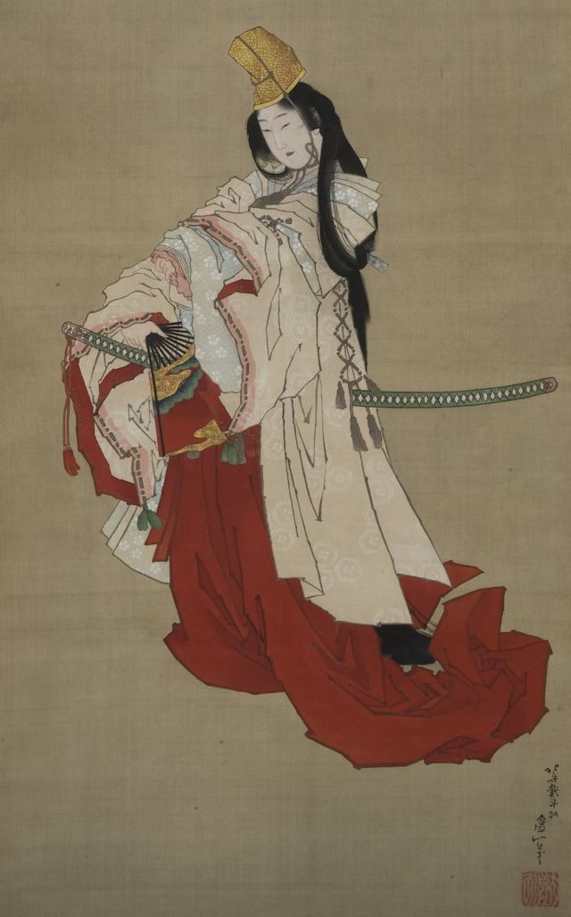 葛飾北斎の白拍子図。全体に線が太くて顔が長いのが嫌だ、個人的には繊細な線の丸顔が好き!