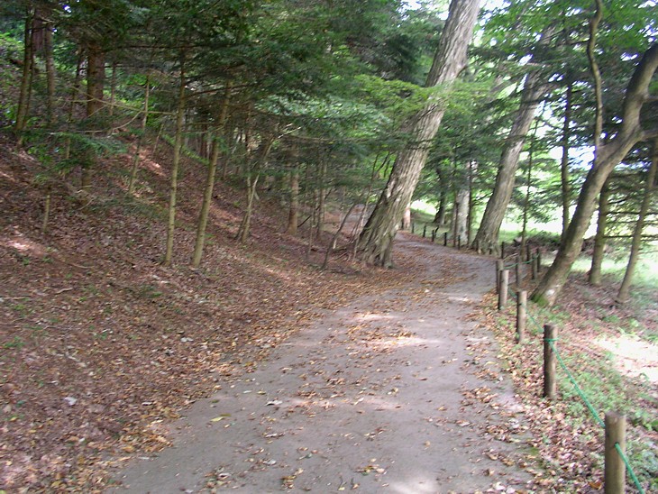 関跡を周回する遊歩道の東麓。整備も行き届いており、散策だけでも雰囲気を味わえる。
