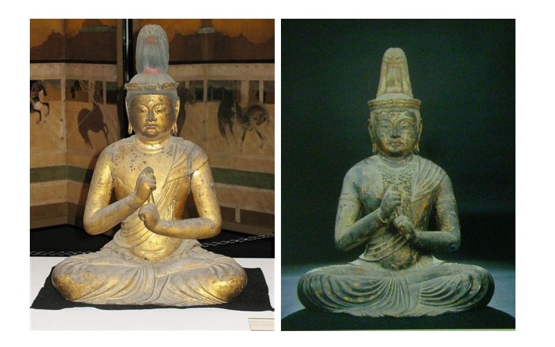 左:運慶作の大日如来像(真如苑所蔵) 右:実慶作の大日如来像(修禅寺所蔵)