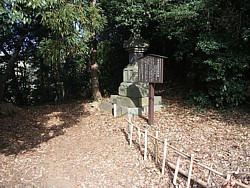 左: みかん畑を縫って急傾斜で登る農道の高みに建つ、伝 曽我祐信 の供養塔。路駐のスペースはあるが、周辺の道が極端に狭いから六本松峠の