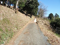 中: 左が不動山への道、直進しているのが大山道で途中から未舗装の細道となる。ここが小田原市と足柄上郡の境で、鎌倉街道は右に下る。